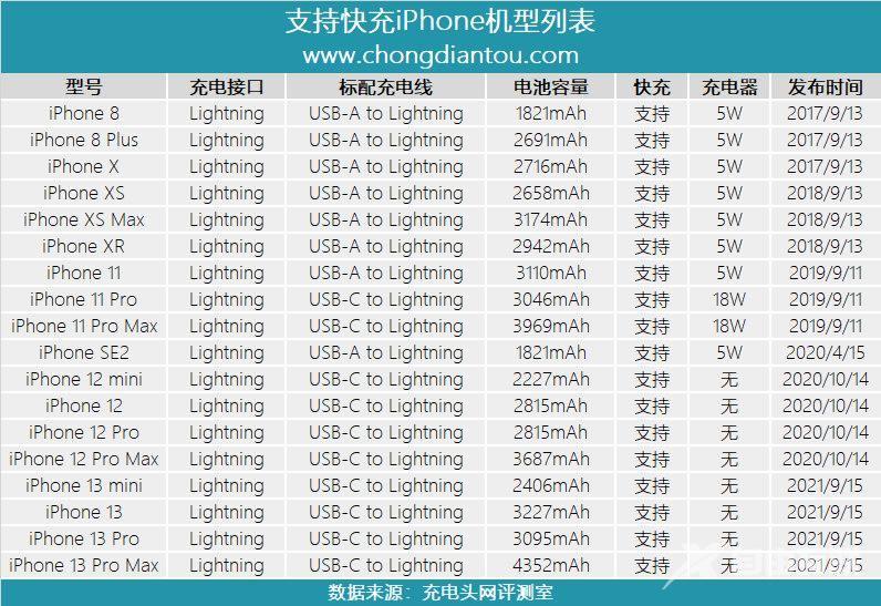 支持快充的iPhone机型