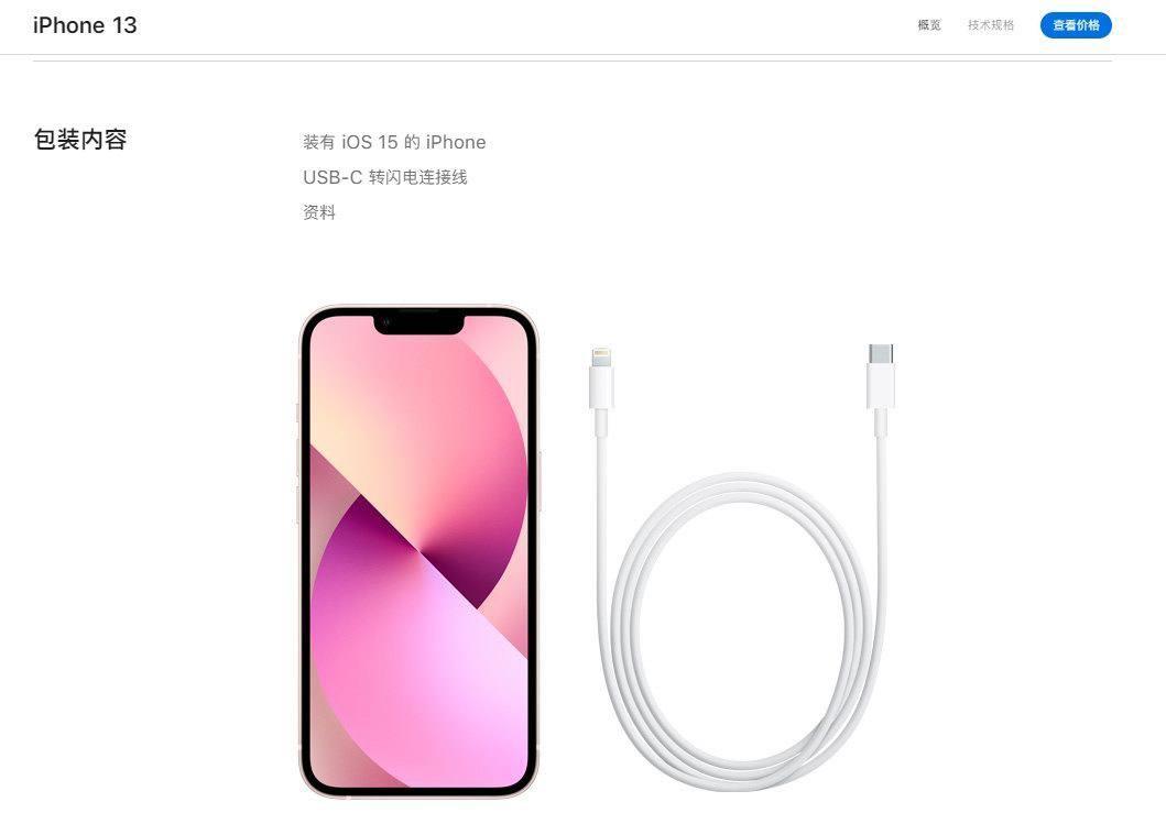 在苹果官网查询iPhone 13详情页,拉到最下面的包装内容,可以看到包装内仅有手机一台,与USB-C to Lightning快充数据线一根,充电器、耳机并未配送。再看看旗舰机型iPhone 13 Pro系列,包装内容中同样是仅包含手机一台、USB-C to Lightning数据线一根,同样不配送耳机与充电器。