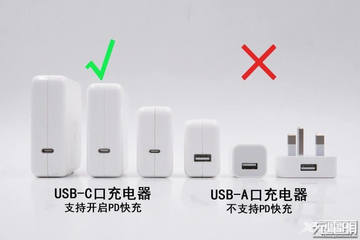 USB PD的全名叫做USB Power Delivery Specification,是USB的标准化组织推出的一个快速充电的标准,是基于USB-C接口上推出的一种新型快速充电标准。想要获得快速充电功能,需要采用USB-C接口的USB PD充电器,也就是图片中左边那3款,右边三款USB-A接口的充电器并不支持USB PD快速充电。