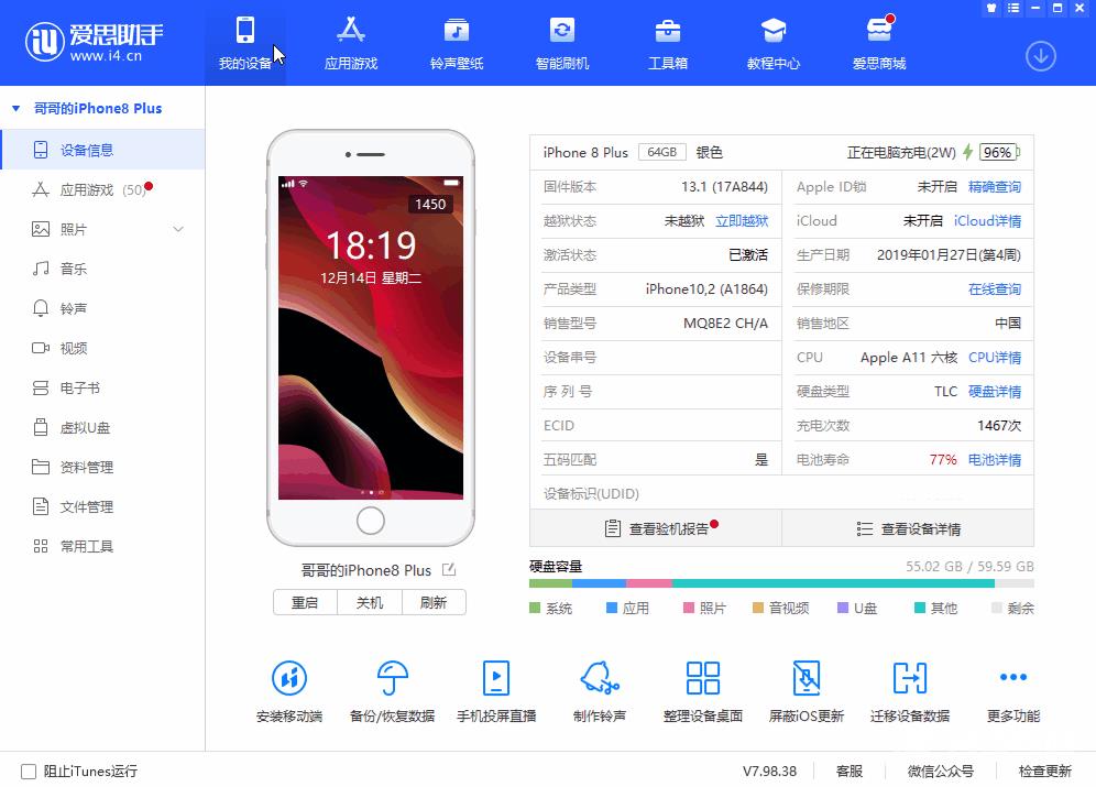 如果你经常使用电脑的话,可以装一个爱思助手,只需要一根数据线,将iPhone连接电脑,在我的设备中点击查看【电池详情】。显示的参数更详细,电压、温度、电流、电池厂商、生产日期都能看到。