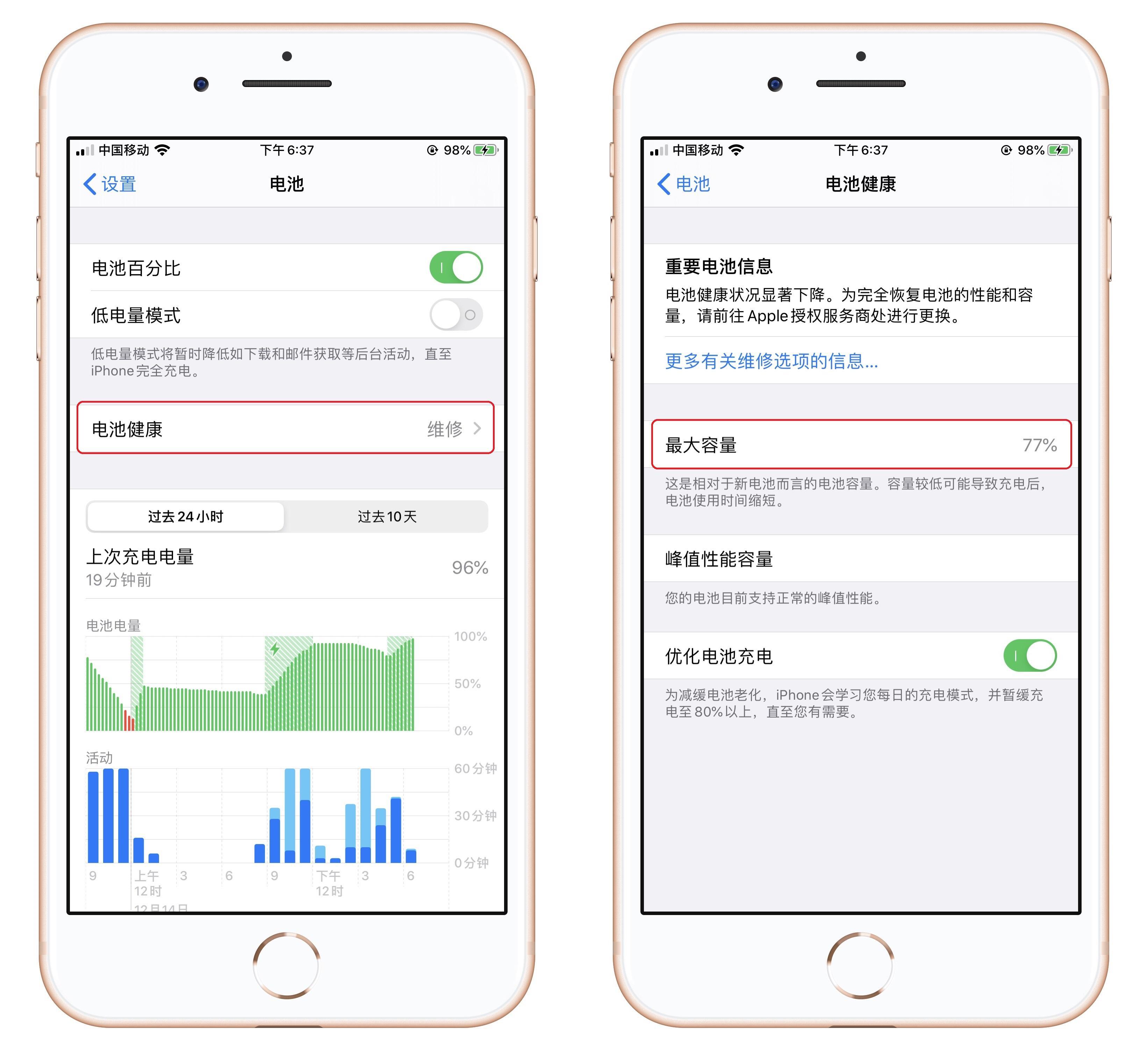 想要查询你的电池容量,直接打开iPhone的设置,找到【电池】,这里有一个【电池健康】入口,进入后就能看到【最大容量】,后面的百分数就是当前电池的实际容量。