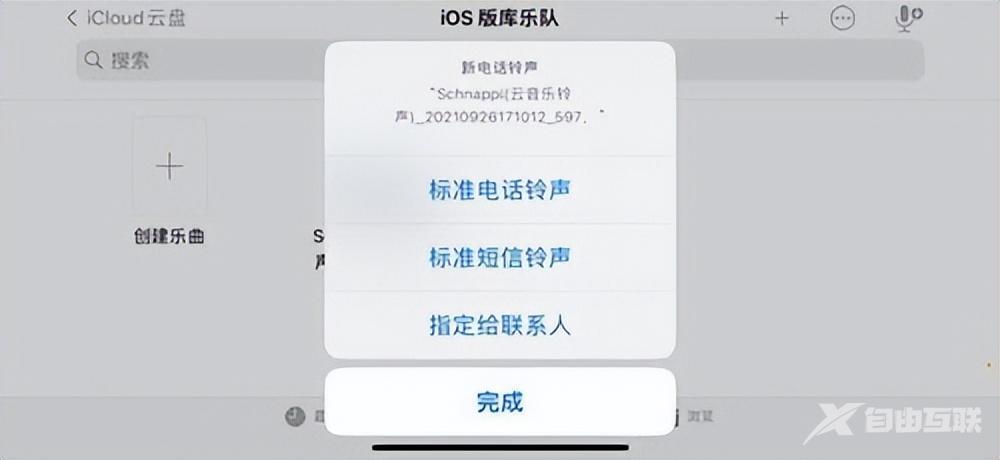 4. iPhone会将铃声复制并导入到库乐队中。在库乐队中找到该铃声并长按,在弹出来的对话框中选择【共享】。