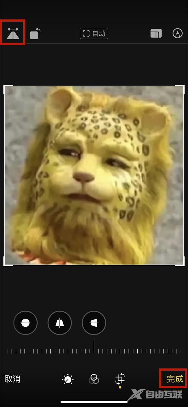 4、找到左上角镜面翻转的按钮,点击即可完成翻转。