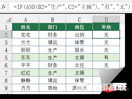 =IF(AND(B2="生产",C2="主操"),"有","无")