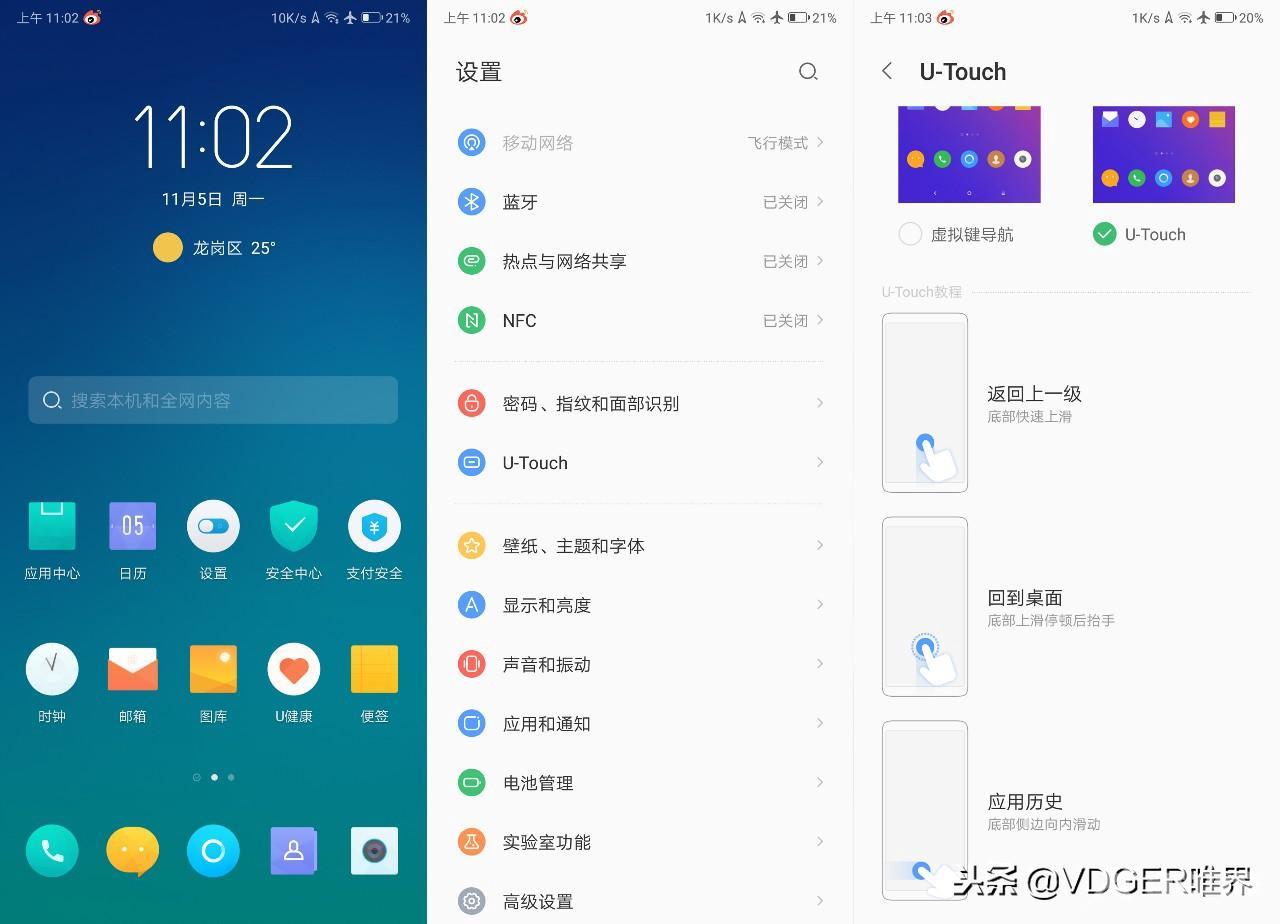 全面屏时代,手机好不好用,手势操作变得至关重要,在ZUI10中U-Touch的交互逻辑则进行了全面升级,通过底部上滑实现“返回上一级”,底部上滑停顿后抬手实现“回到桌面”,底部侧边向内滑动则可调出“多任务界面”,实际体验也是比较容易上手的,学习成本低,单手操作也是毫无压力!