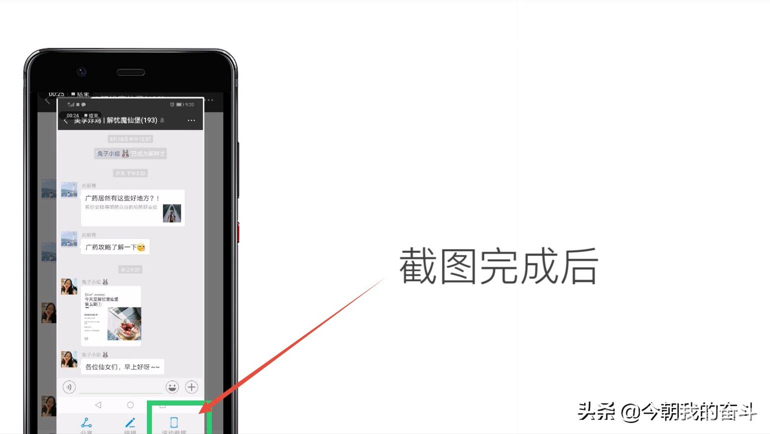 3/4截图完成后,点击滚动截屏