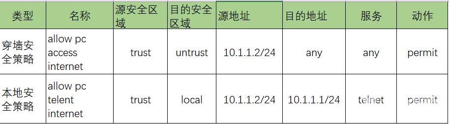 尤其讲下本地安全策略,也就是与local域相关相关的安全策略。以上例子中,位于trust域的PC登录防火墙,配置trust访问local的安全策略;反之如果防火墙主动访问其他安全区域的对象,例如防火墙向日志服务器上报日志、防火墙连接安全中心升级特征库等,需要配置local到其他安全区域的安全策略。记住一点防火墙本身是local安全区域,接口加入的安全区域代表接口连接的网络属于此安全区域,这样就可以分清防火墙本身和外界网络的域间关系了。
