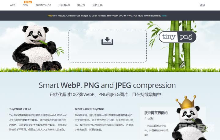 它采用的是智能有损压缩技术,支持压缩WebP, PNG and JPEG等格式的图片。 它通过选择性地减少图片中的颜色来降低字节数保存图片数据, 所以对图片画质的影响几乎没有。