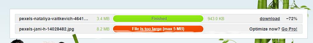该网站支持批量上传照片进行压缩,不过限制压缩的图片单张大小不超过5兆,如果你的图片太大了就不适用了。