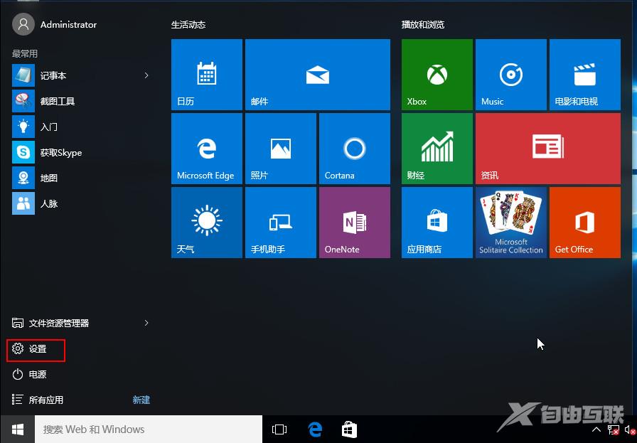 1、打开开始菜单,选择“设置”选项,如下图所示: