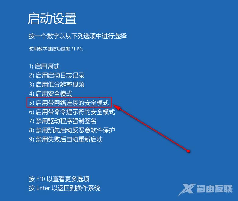 8、选择“启用带网络连接的安全模式”,如下图所示: