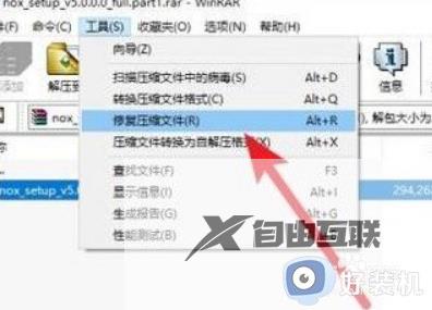 2、选择出现问题的压缩包,在界面上边的工具中选择修复压缩文件。