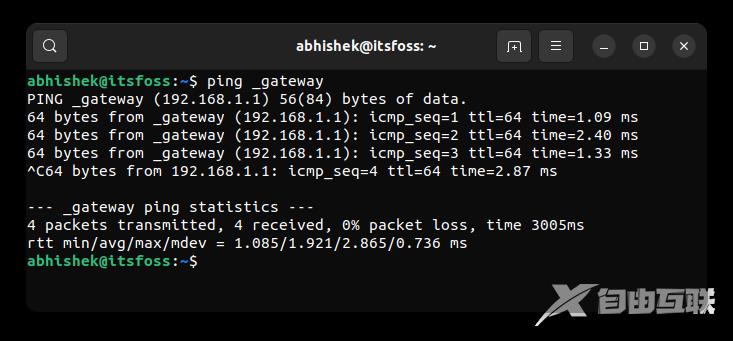 正如 Samir 在评论中所分享的,你也可以(在 Debian 上)使用 ping命令来获得网关 IP: