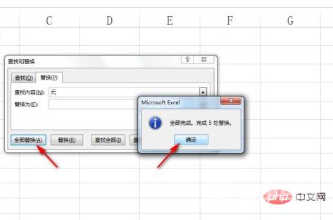 然后点击“全部替换”,点击出现的提示框下的“确定”,如下图所示。