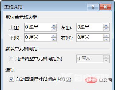 弹出“表格选项”对话框,默认情况下左右边距为“0.19厘米”。
