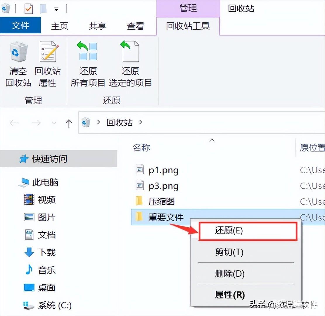 方法1:通过回收站来恢复文件