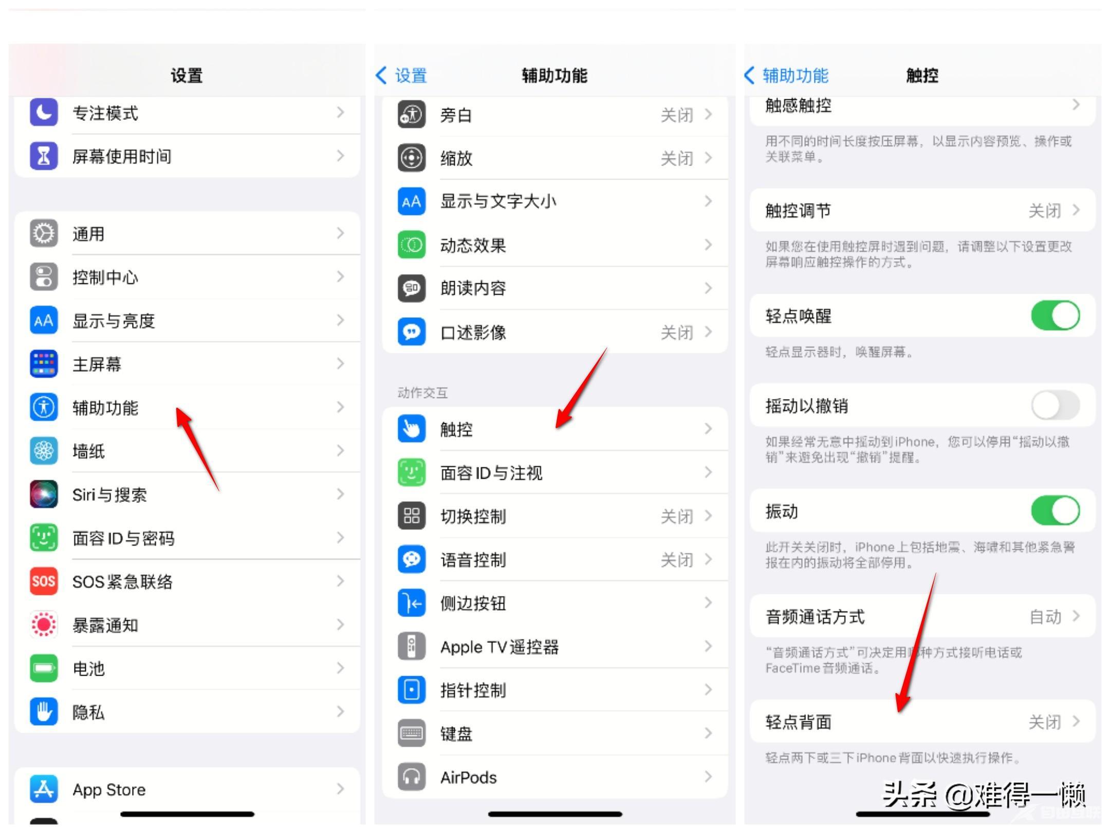设置方法:【辅助功能】-【触控】-【轻点背面】
