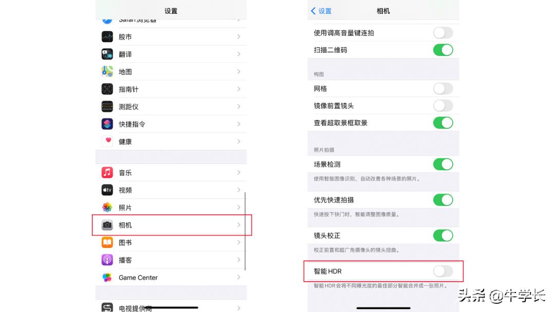 打开iPhone【设置】-【相机】-【智能HDR】,选择关闭即可。