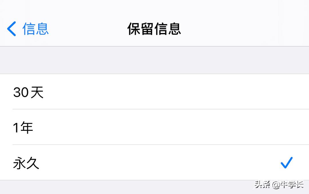 但如果你像小编一样,接收到的都是垃圾短信,那么建议你打开iPhone【设置】-【信息】-【保留信息】,在这里就可以自由设置短信保留时长,到期系统将会自动清理短信了!