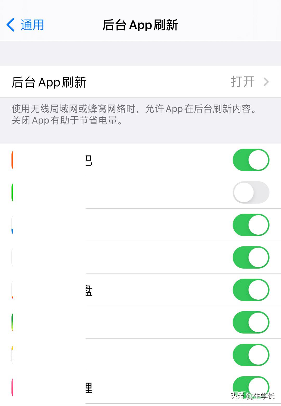 当APP退出后,却还是会收到消息通知,那是因为开启了【后台刷新】,不仅耗电还十分占用内存。