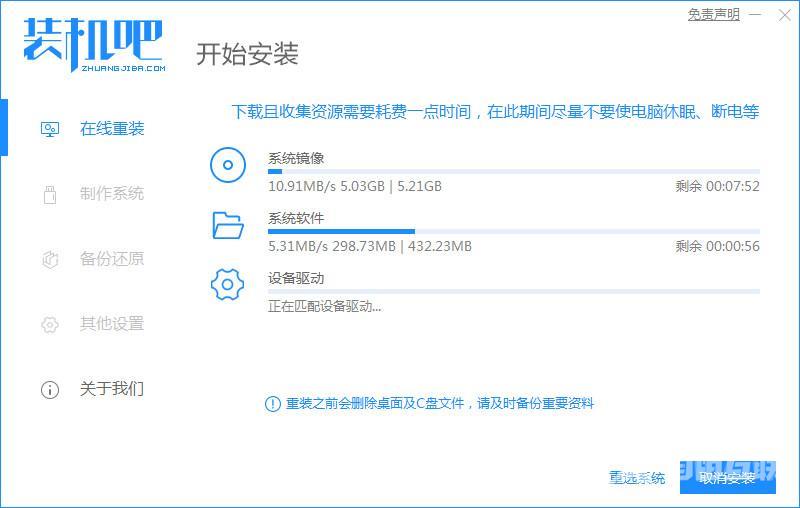1.首先我们打开电脑浏览器搜索装机吧一键重装系统软件,下载并打开此软件。