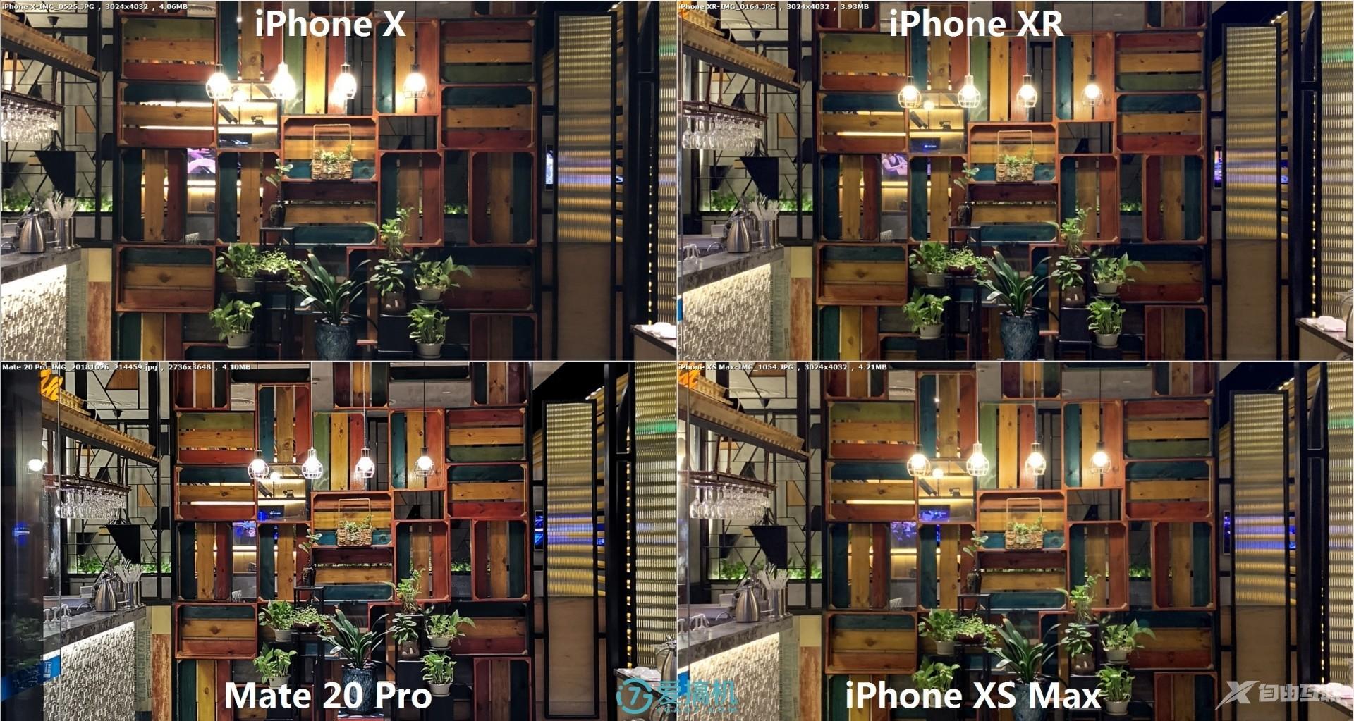 iPhone XR:苹果给了XR和XS Max不同的测光偏向。虽然ISO一样的场景,它们的表现无比接近。但在灯光和弱光场景,XR的测光会有大几率比XS Max更低。更低的ISO,让XR的高光压制、噪点和辨析力都比XS Max稍好(差距很小就是了)。以前双摄iPhone会用副摄参与测光(取景时挡住副摄,会导致测光变动),但XS Max已经没有这种现象了。所以还无法确认这个测光差异,是因为副摄缺失,还是因为算法差异所致。