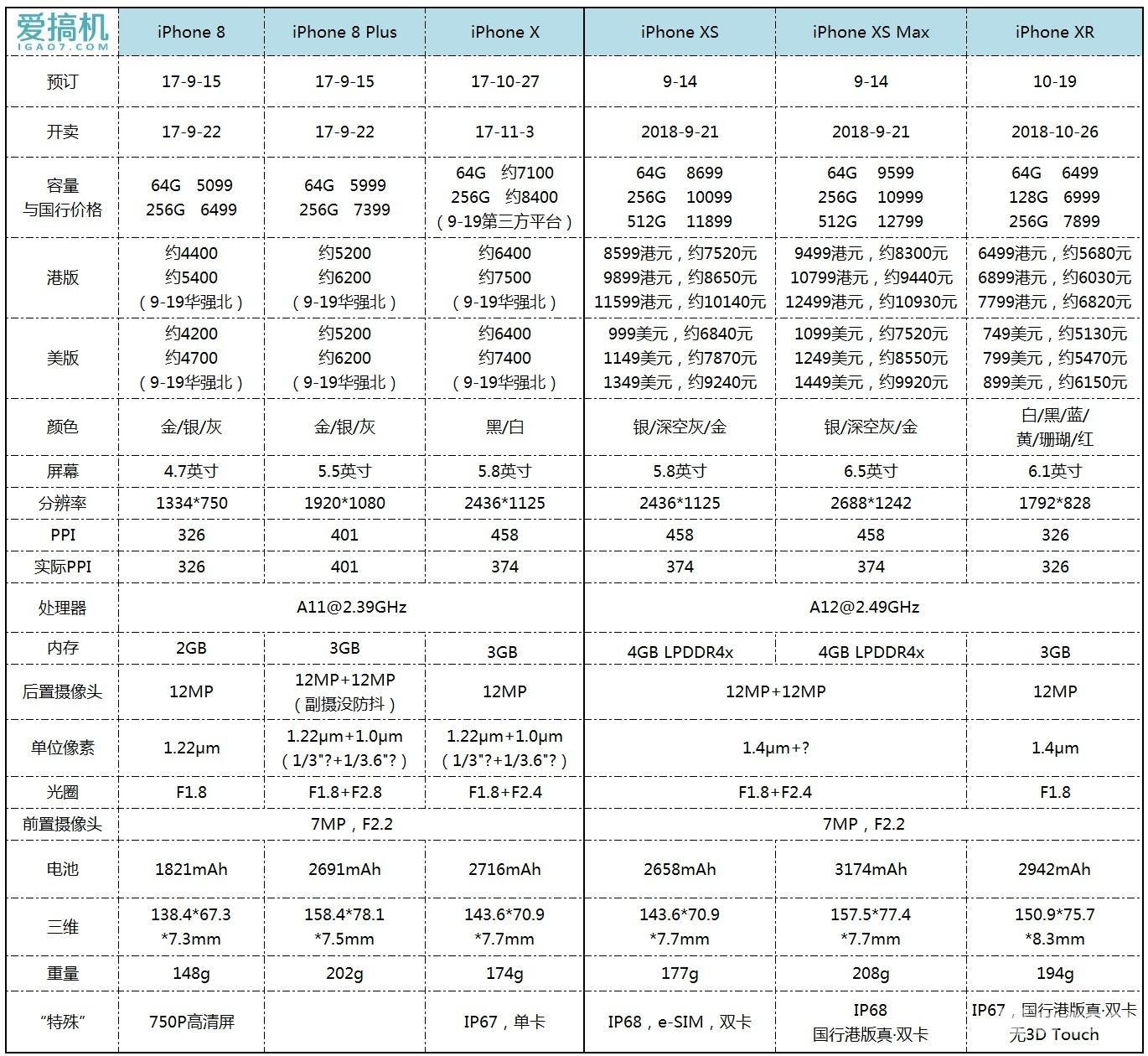 可视角度:下方图片中,屏幕最大的是XS Max、中间是XR、屏幕最小的是iPhone 8: