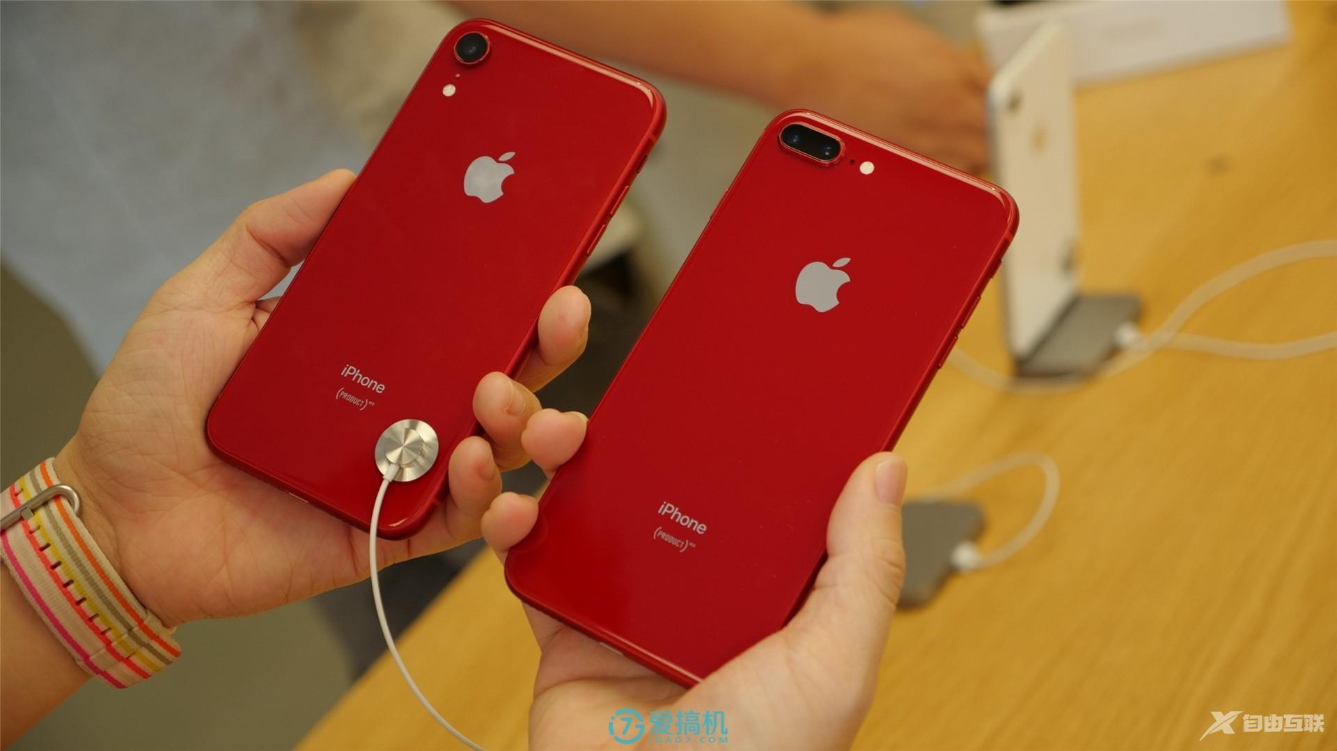 红色iPhone XR与红色iPhone 8 Plus(背盖同样有PRODUCT RED标识)