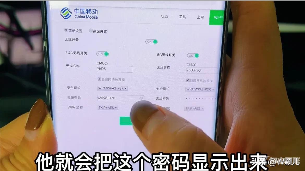 这个也同样是我们点击一下就会显示出来我们这个无线密码。那如果说你家里这个无线密码用了好几年了,都没有更改过,这样呢,就会有很多人都知道你家的无线密码,就可能会发生蹭网的现象。