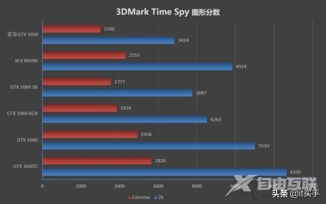 在3DMark Time Spy模式下,GTX1650与1063较为接近,但与1066依然有一条更长的距离。所以理论跑分,GTX1650是前面落后。