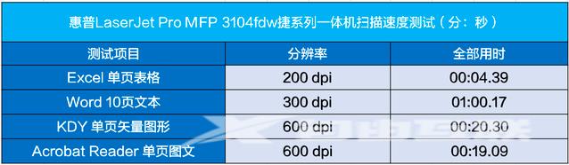 而在扫描速度方面,200dpi分辨率下扫描速度在4秒左右,在600dpi下扫描图文用时在19秒左右,完全能够满足日常的办公需求。