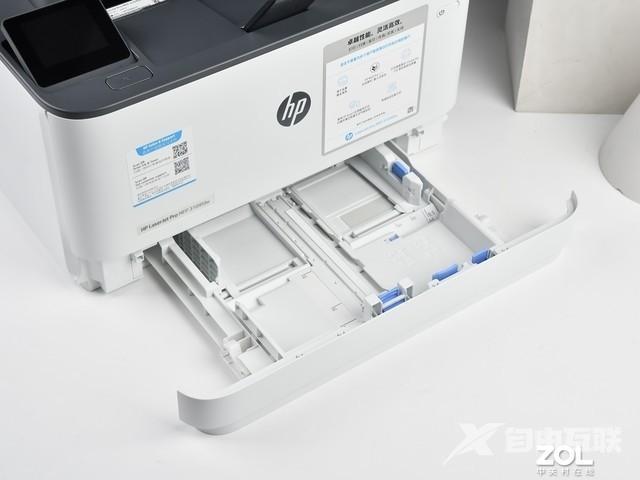 在惠普3104fdw一体机的最下方,则是为用户配备了250页的大容量纸盒。其最大的特点就是采用了全封闭的设计,能够最大程度降低纸张受潮的概率,从而减少卡纸的现象。