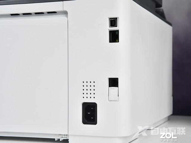 最后在接口部分,这款惠普3104fdw采用了丰富的接口设计,分别包含了电源接口、有线网络接口以及D型USB接口。并且所有接口设计在机身的同一侧,非常便于日常使用。