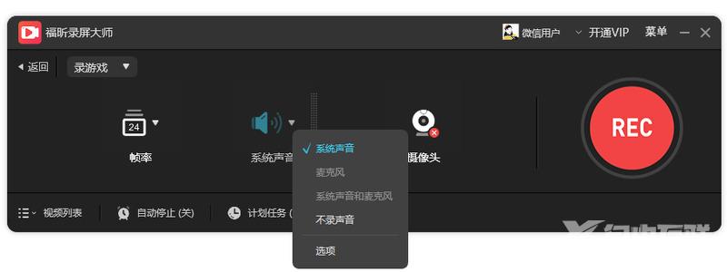 2、声音这一栏,可以录制系统声音、也可以连接麦克风设备进行录音。