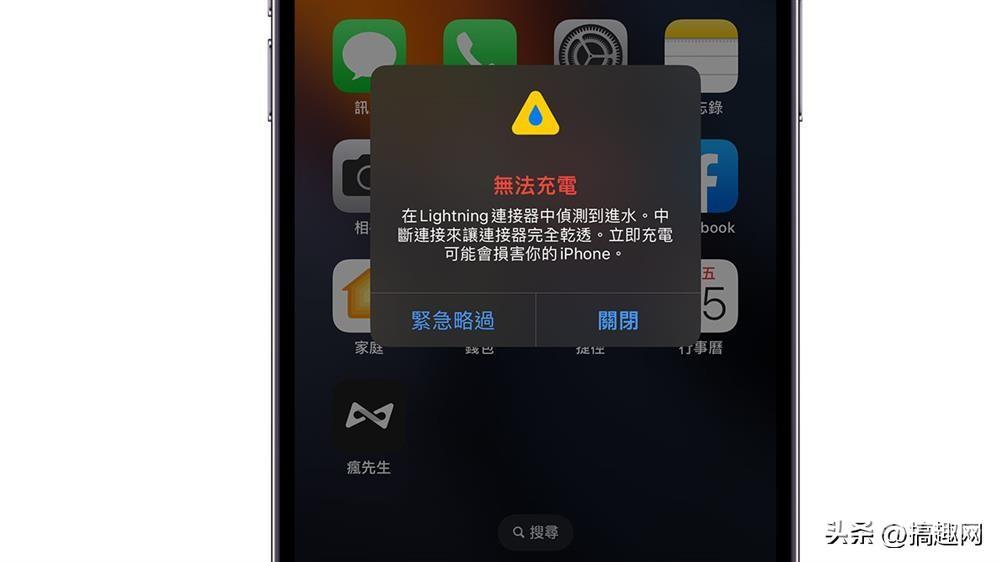 如果手边没有无线充电器设备能给 iPhone 充电,又遇到 iPhone侦测到进水无法充电状态下,苹果官方表示可以在紧急状态下将 iPhone 重新连接 Lightning充电线或配件,就可以选择「紧急略过」进水侦测功能,依旧能让 iPhone 继续充电。