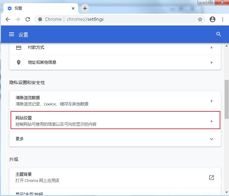 2、在设置页面中下拉找到“隐私设置和安全性”这一项,点击打开下面的“网站设置”,如图所示。