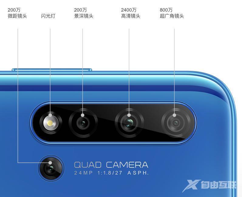 后置四摄分别是:2400万高清+800万超广角+200万微距+200万景深像素。
