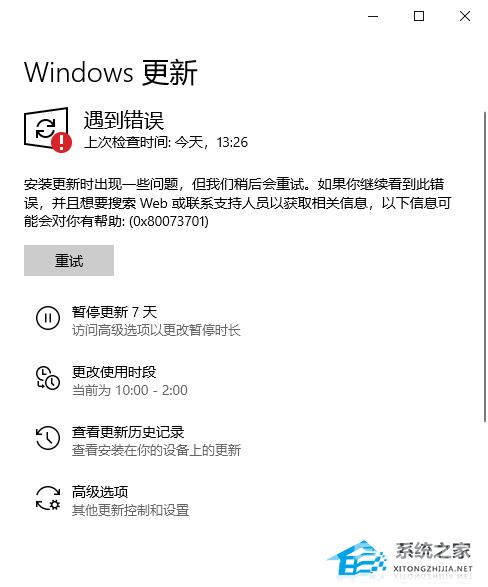 问题:如何解决Windows 10更新错误代码:0x80073701?