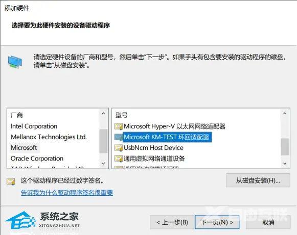 厂商选Microsoft,型号为Microsoft KM-TEST 环回适配器。
