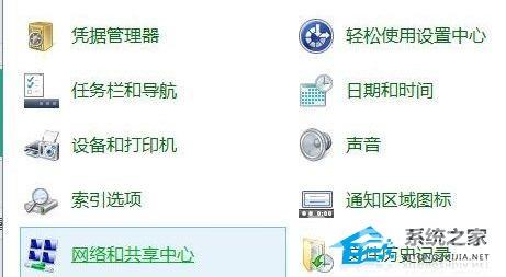1、首先进入到“控制面板”,然后找到“网络和共享中心”。