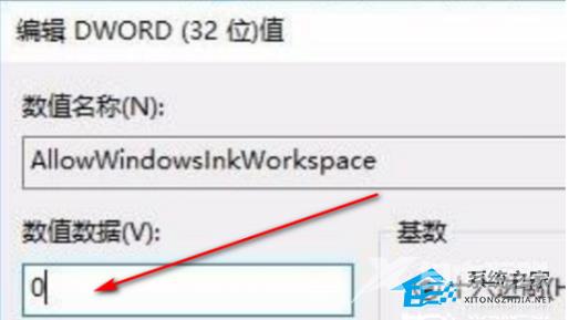 8、在弹出的编辑窗口中,把其数值数据修改为0,最后点击确定按钮。