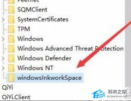 5、把刚刚新建的项重命名为WindowsINKWorkSpace。