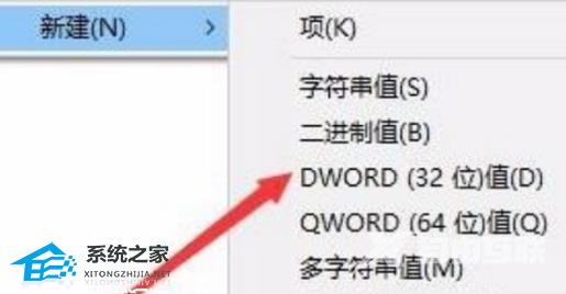 6、然后点击刚刚新建的注册表项,在右侧的空白位置点击右键,在弹出菜单中依次点击“新建/Dword(32位)值”菜单项。