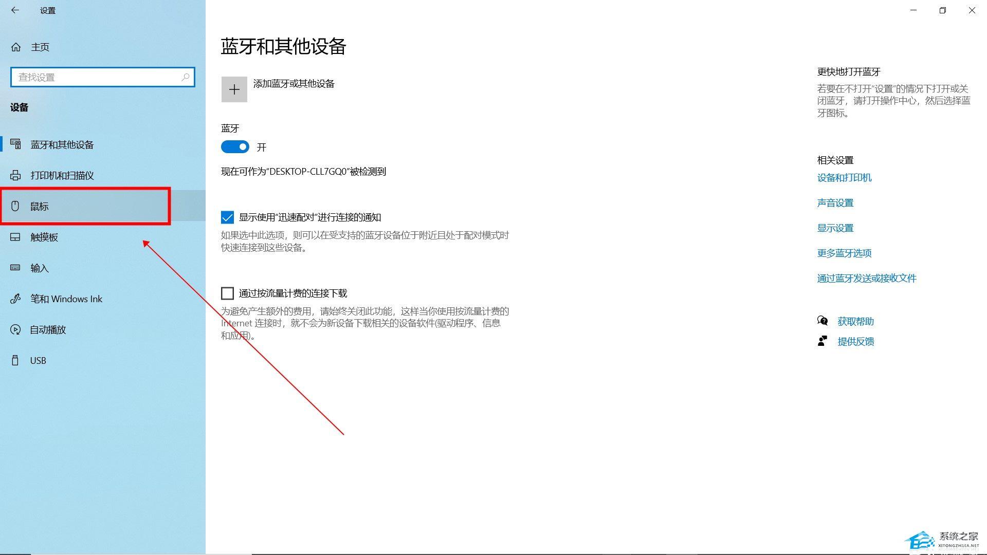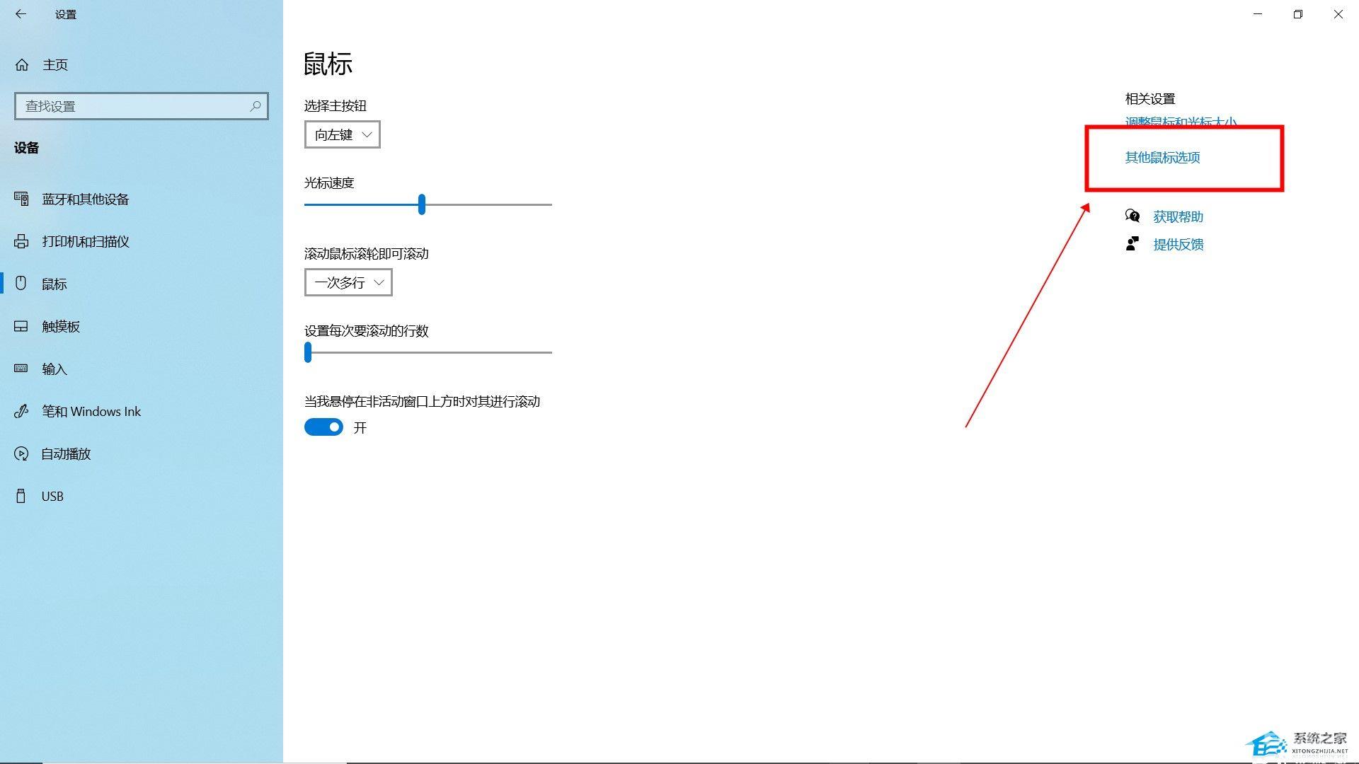 4、在电脑鼠标中,点击选择右侧的“其他鼠标选项”。