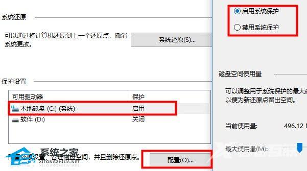 2、配置系统保护功能,选择禁用。(有开启的话)