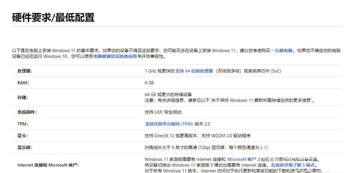微软早前已经公布了Win11的最低硬件要求,具体如下图。