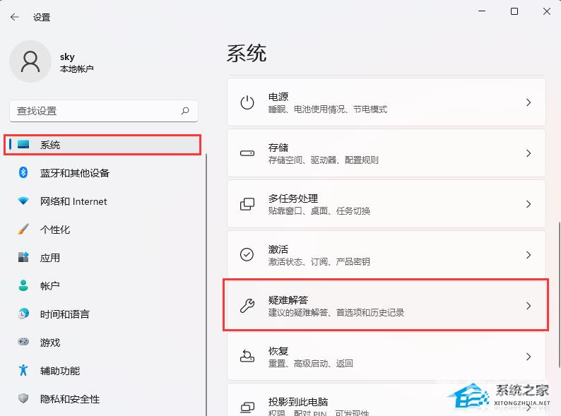 2、Windows 设置窗口,左侧边栏,点击【系统】,右侧找到并点击【疑难解答(建议的疑难解答、首选项和历史记录)】;
