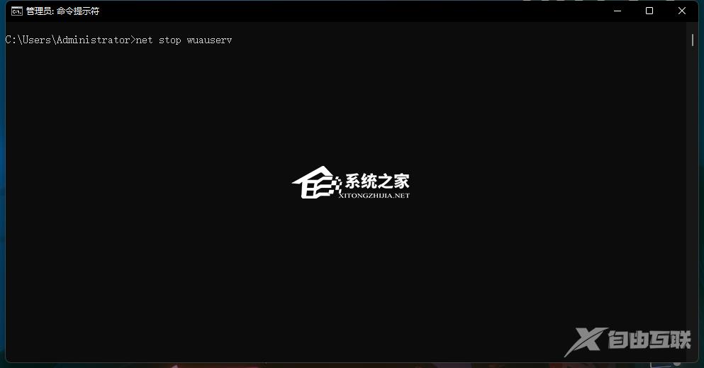 步骤2、在命令提示符窗口中输入【net stop wuauserv】,并按【Enter】键,停止Windows更新服务;