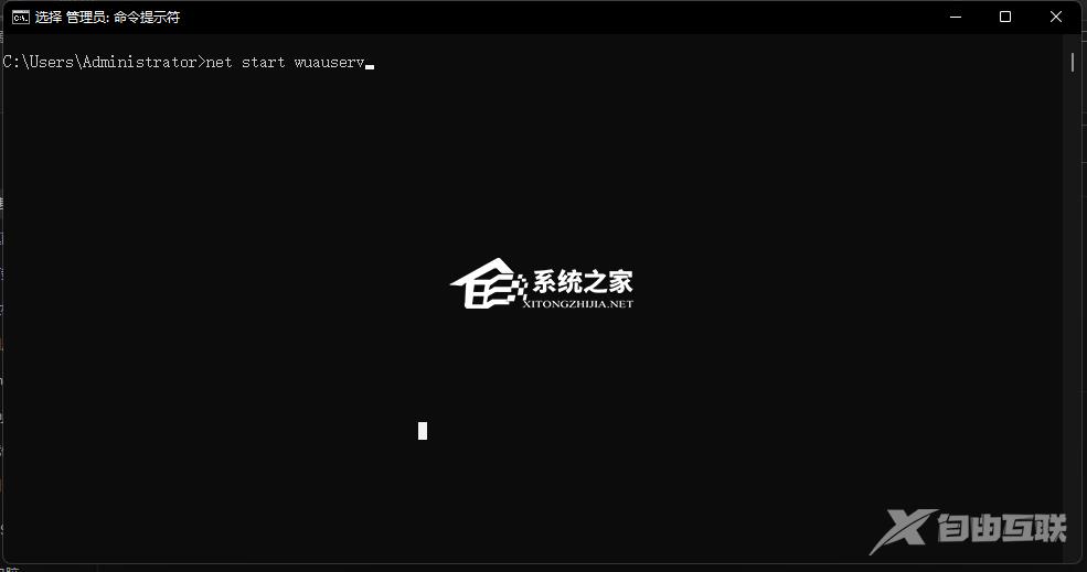 步骤4、以相同的方式再次以管理员身份打开命令提示符,输入【net start wuauserv】,并按【Enter】键,启动Windows更新服务,然后再次尝试更新系统即可。