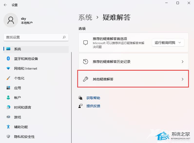 3、当前路径为:系统>疑难解答,选项下,点击【其他疑难解答】;